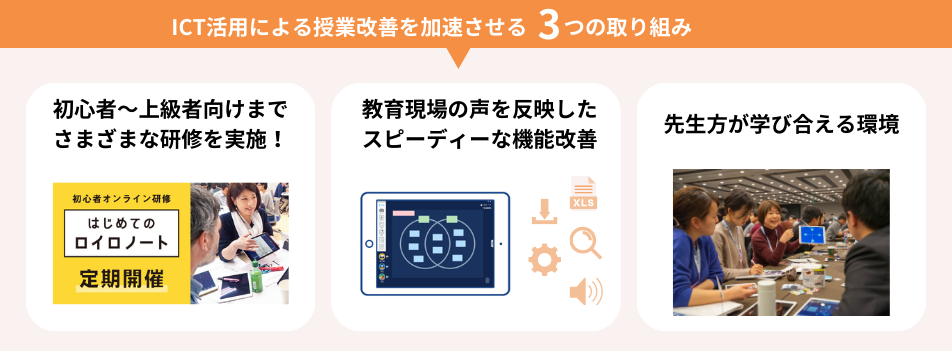 私たちLoiLoでは、教育の質そのものを高めることを使命として、以下3つの取り組みを実施しています。
