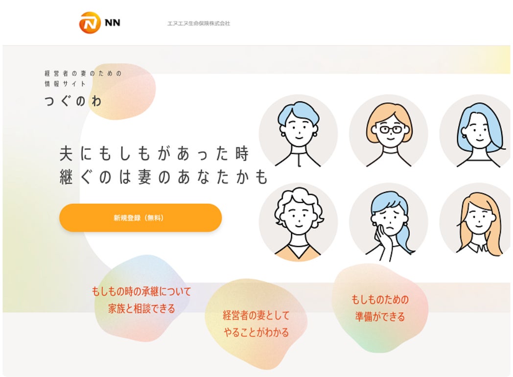 エヌエヌ生命は、中小企業サポーターとして「家族を守り、支えるサービス」を提供しています。その活動のなかで、夫の急な逝去に伴って、妻が夫の事業を突然承継することになり、悩み苦しんでいる状況を知りました。そこで、現経営者の突然の経営離脱・相続発生時における事前準備を促すことで中小企業の円滑な事業承継を支援すべく、「つぐのわ」を運営しています。