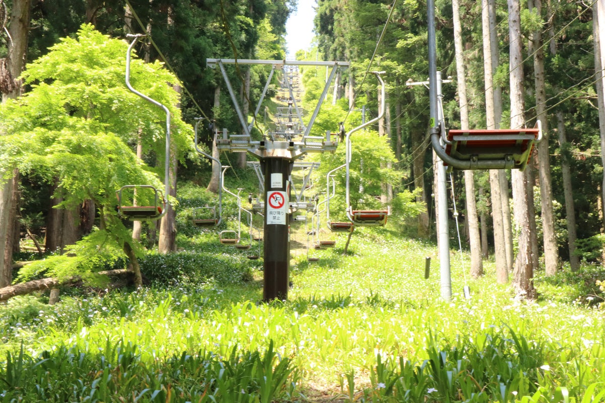 賤ヶ岳トンネルにほど近い乗り場から賤ヶ岳古戦場を結ぶリフト。群生するシャガが例年4月中旬から5月中旬にかけて見頃を迎え、足元に広がる薄紫色の花々をリフトに乗りながら見ることができる。賤ヶ岳古戦場から余呉湖畔までは、徒歩約1時間30分のハイキングコースが整備されており、秋には紅葉狩りも楽しめる。