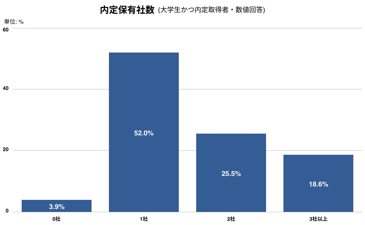 内定取得者のうち、44.1%が複数の内定を保有している
