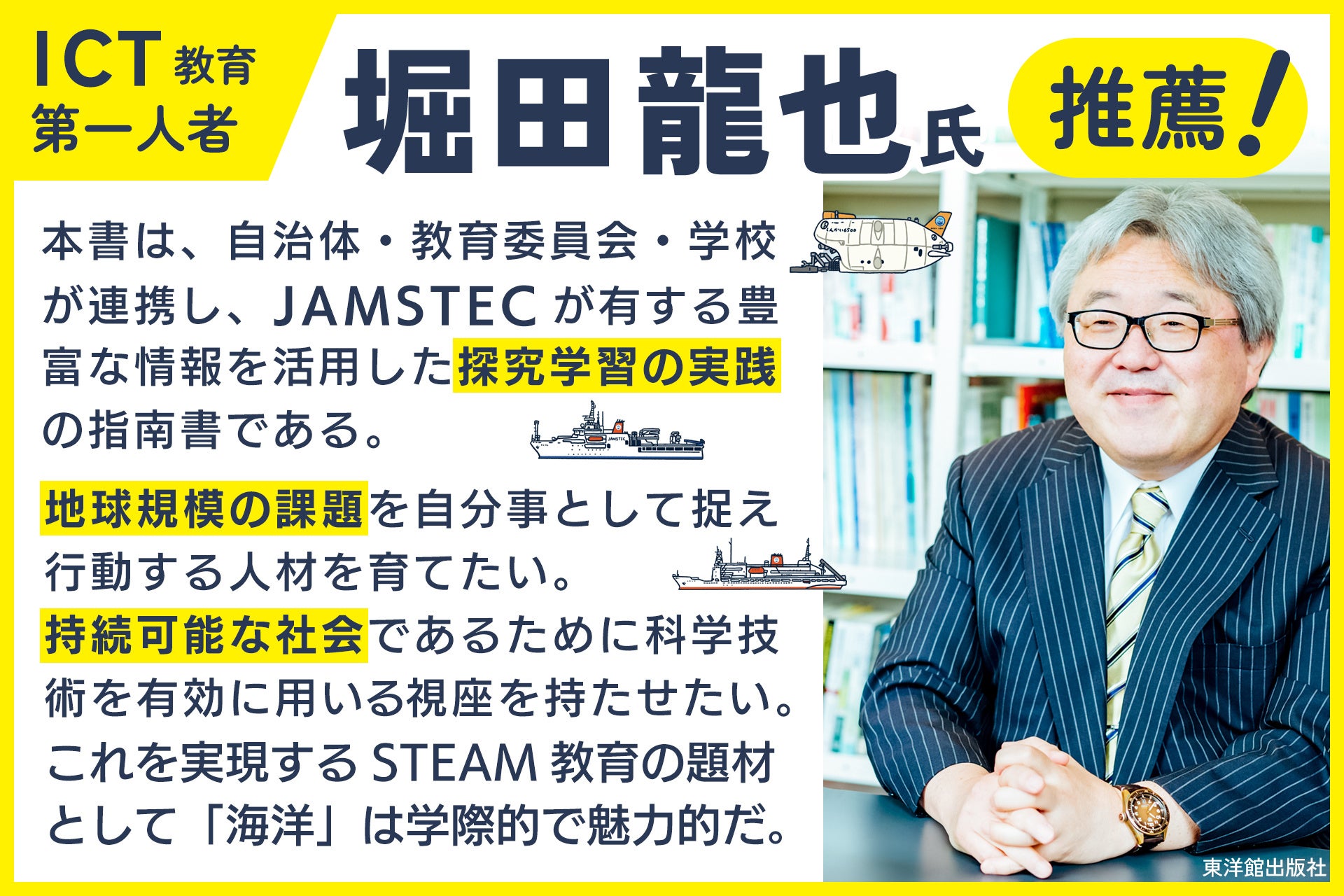 本書で紹介する「海洋STEAM教材」は、JAMSTECが長年の調査・研究で蓄積してきた「一次データ(本物の研究データ)」や「希少な画像・映像」を教材化している点が最大の特徴です。「今、地球で起きていること」を入り口にすることで、子どもたちの知的好奇心を刺激し、社会課題を「自分事」として捉える力を育みます。