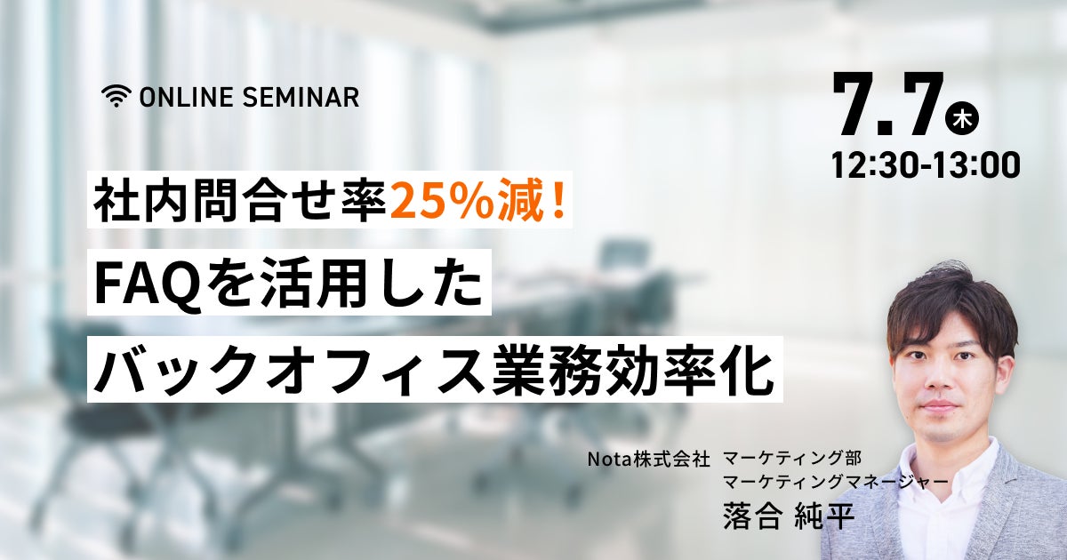 革新的な検索型FAQ「Helpfeel(ヘルプフィール)」( https://helpfeel.com/ )を提供しているNota株式会社(京都府京都市 代表取締役/CEO:洛西一周)はこのたび、株式会社マイナビ(本社:東京都千代田区、代表取締役 社長執行役員:土屋 芳明)のTECH+セミナー運営事務局が主催する「TECH+セミナー バックオフィス業務のデジタル化 Day Jul. バックオフィスから次の一歩を」にNota株式会社 マーケティング部 マーケティングマネージャーの落合 純平が登壇することをお知らせ致します。