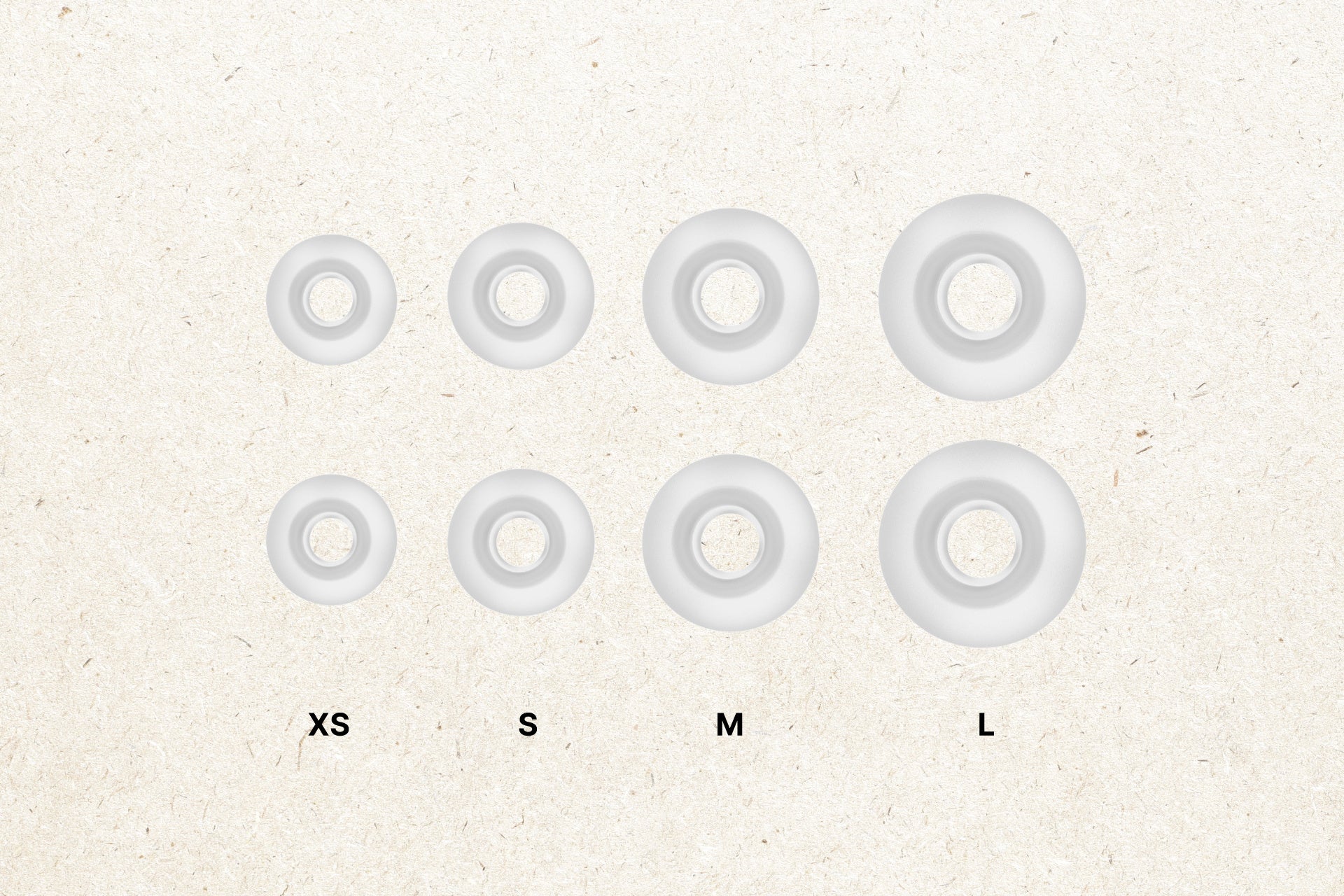 ユーザーマニュアル、シリコンイヤーピース(XS/S/M/L各サイズ1ペア)