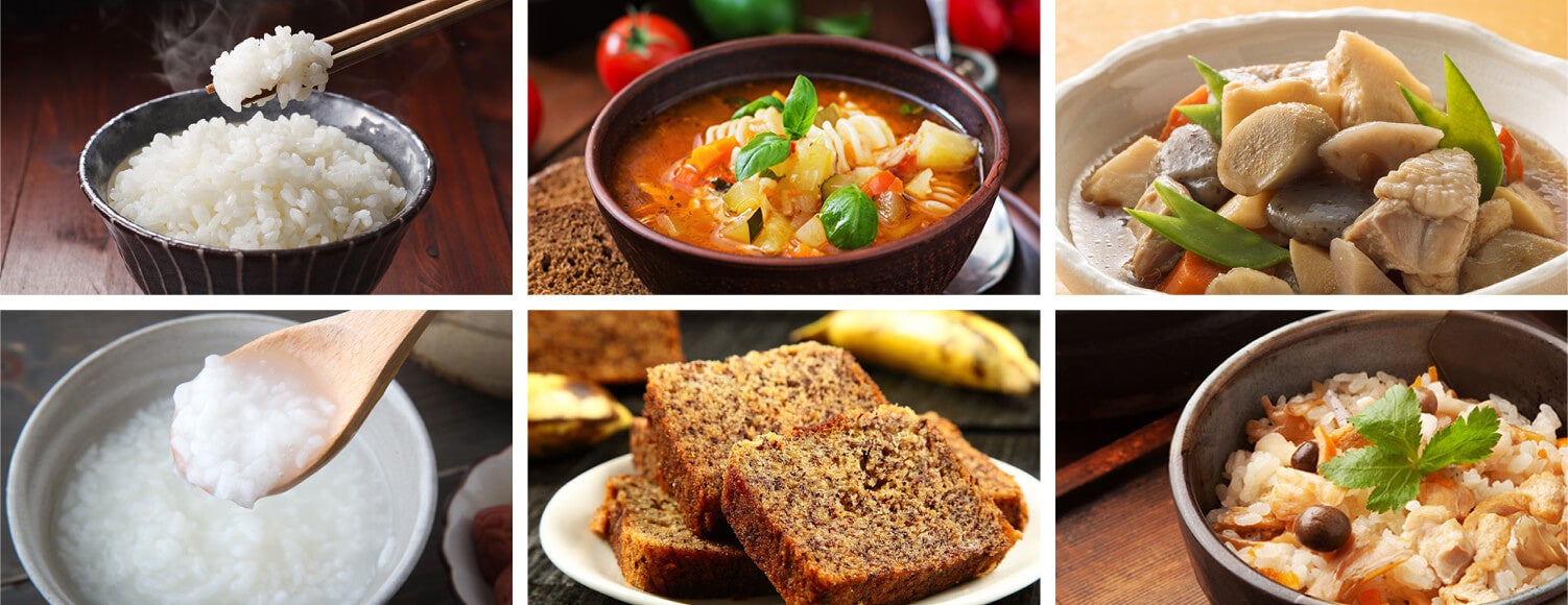 白米、玄米、スープ、お粥、蒸し、ケーキ、煮込み
