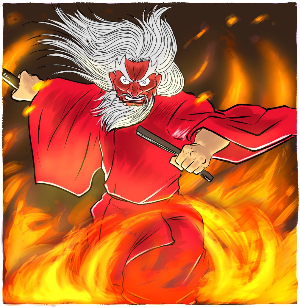 このような派手な絵面の天狗が出てきて興味が湧きました。