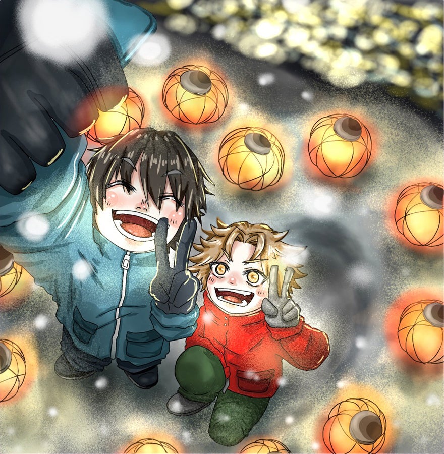 雪のハートオブジェと夜景を一度に楽しめる素敵な場所を描きました。