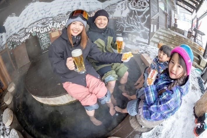 ゴンドラリフト「イヴ」山麓駅付近の「つがいけ横丁」では、既存の飲食店「TSUGA BASE」「つがのとり」「和牛ステーキTEPPAN」「鷲家」に加え、新たに「OMU CHEF OSAKA」「Beer&Chips」「Lulu's Raclette」の3店舗がオープンしました。これらの施設では、日本文化を体験できる「お食事と足湯を同時に楽しめる」ユニークなスタイルを提供しており、アプレスキーの新たな楽しみ方として、心地よい時間と空間を提供しています。