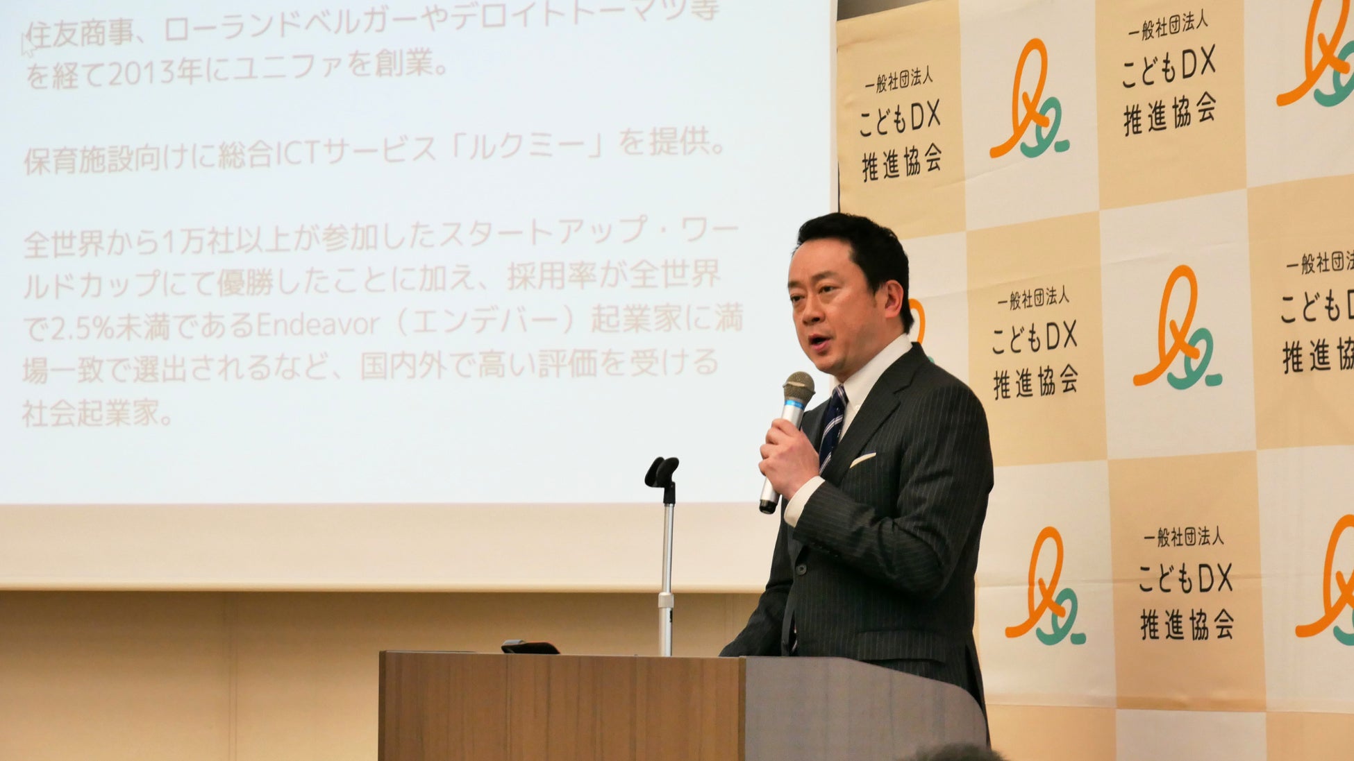 2013年にユニファを創業し、保育総合ICTサービス「ルクミー」を開発・提供。全世界から1万社以上が参加したスタートアップ・ワールドカップにて優勝したことに加え、採用率が全世界で2.5%未満であるEndeavor(エンデバー)起業家に満場一致で選出されるなど、国内外で高い評価を受ける社会起業家。2023年7月、一般社団法人こどもDX推進協会の理事に就任し、2025年8月には経済産業省主催の「日本スタートアップ大賞2025」にて「審査委員会特別賞」を受賞。