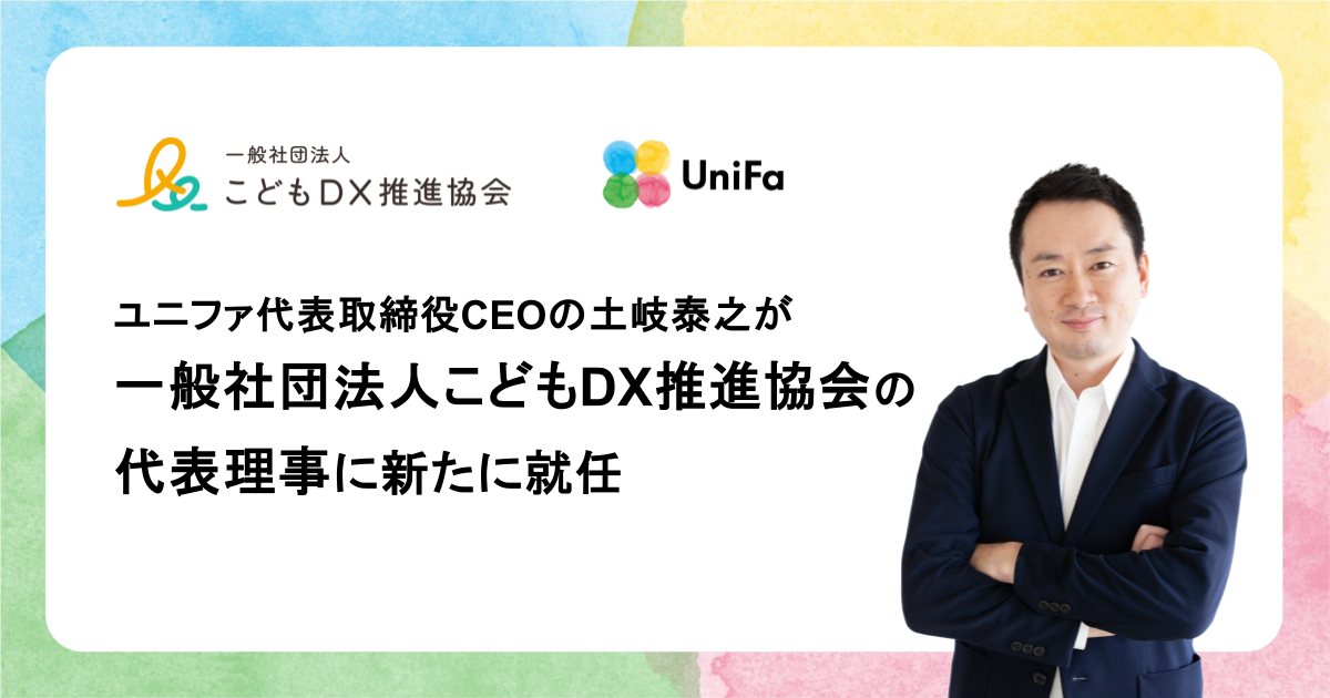 ユニファ、代表取締役CEOの土岐泰之が一般社団法人こどもDX推進協会の代表理事に新たに就任