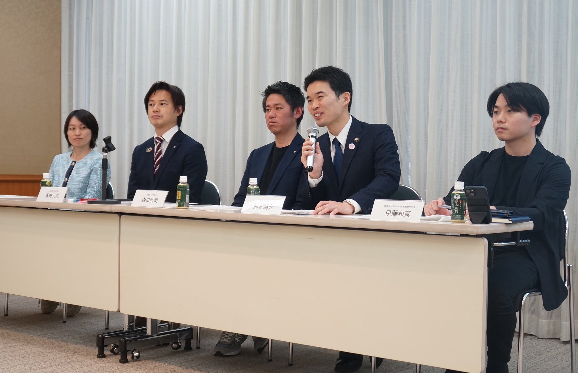 記者会見には約20名のメディア関係者などが参加し(対面・オンライン)、自治体パートナーの各首長とPoliPoli代表の伊藤が意気込み等を述べました。