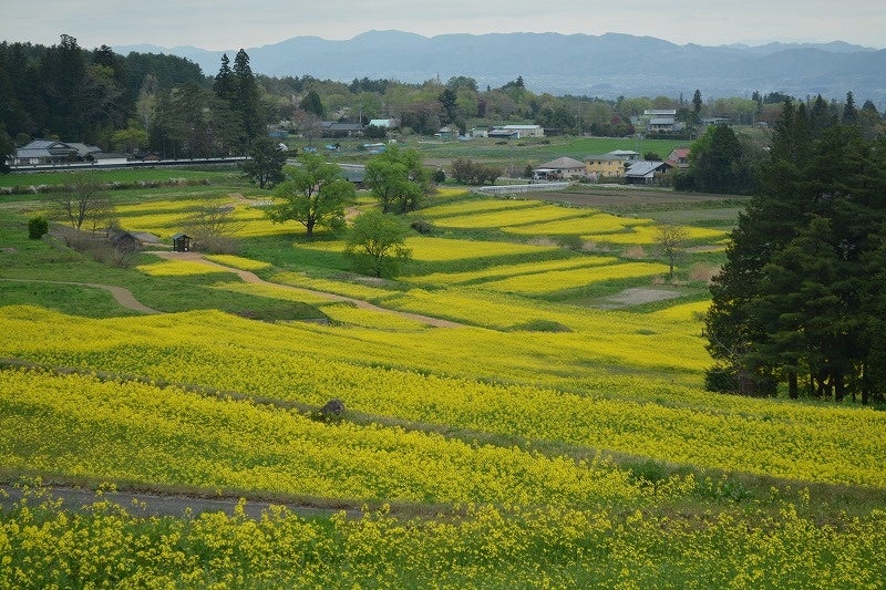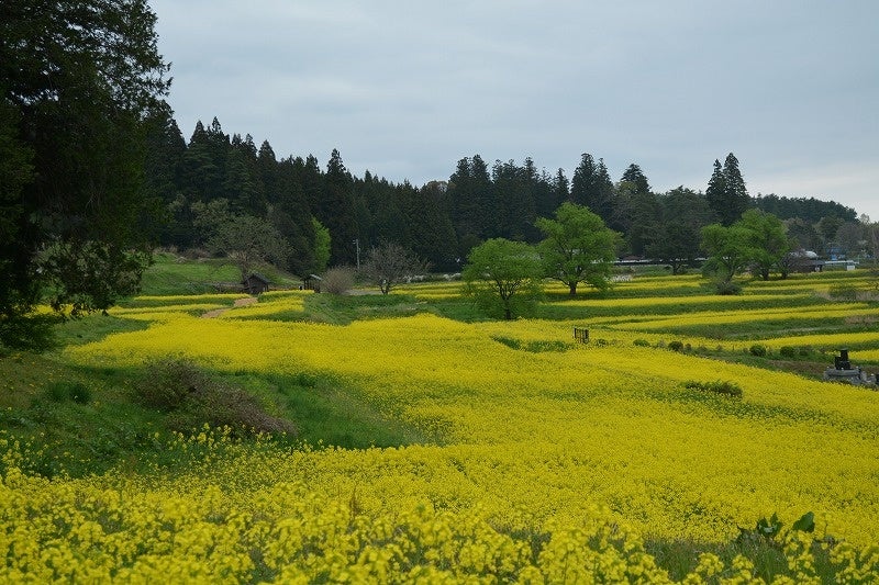 また、里山文化ゾーンでは圧倒的な広さのナノハナが咲き広がります。4/22には見頃を迎え、6ha、500万本の圧倒的なスケールで春の公園を演出します。見頃は5月上旬までですので、ナノハナもGWは十分に楽しめます。※気候等により時期が前後することがあります