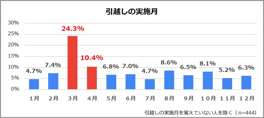 ◆引越しの実施時期は「3月」が最多