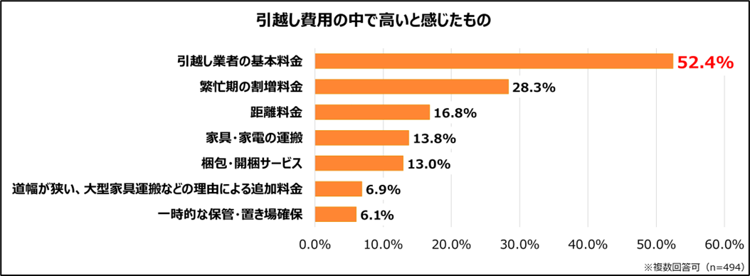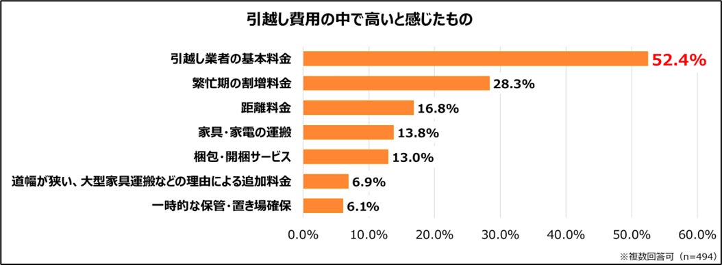 ◆引越し費用の中で“特に高い”と感じたのは「引越し業者の基本料金」で52.4%