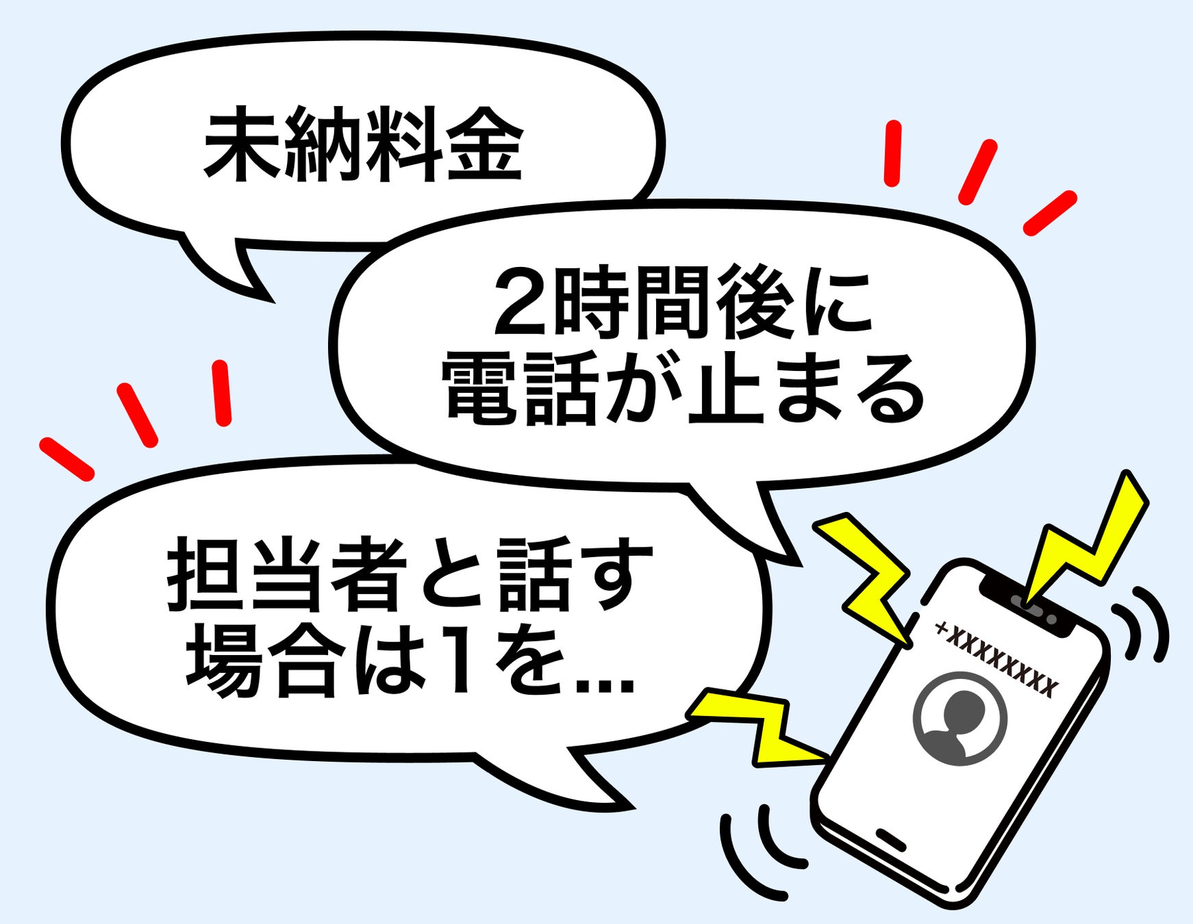 総務省や通信事業者をかたり「未納料金がある」「2時間以内に携帯電話が使えなくなる」「担当者につなぐ場合は◯番を押してください」などの自動音声が流れる電話が多発しています。指示に従うとオペレーターをかたる人物につながり、金銭の支払いを求められたり、個人情報を聞き出されたりする恐れがあります。