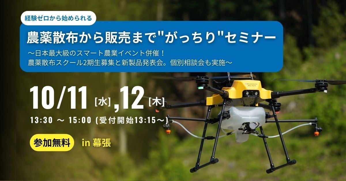 経験ゼロから始められる農業ドローンビジネス!『農薬散布から販売まで"がっちり"セミナー』10月11日〜12日、千葉・幕張にて開催
