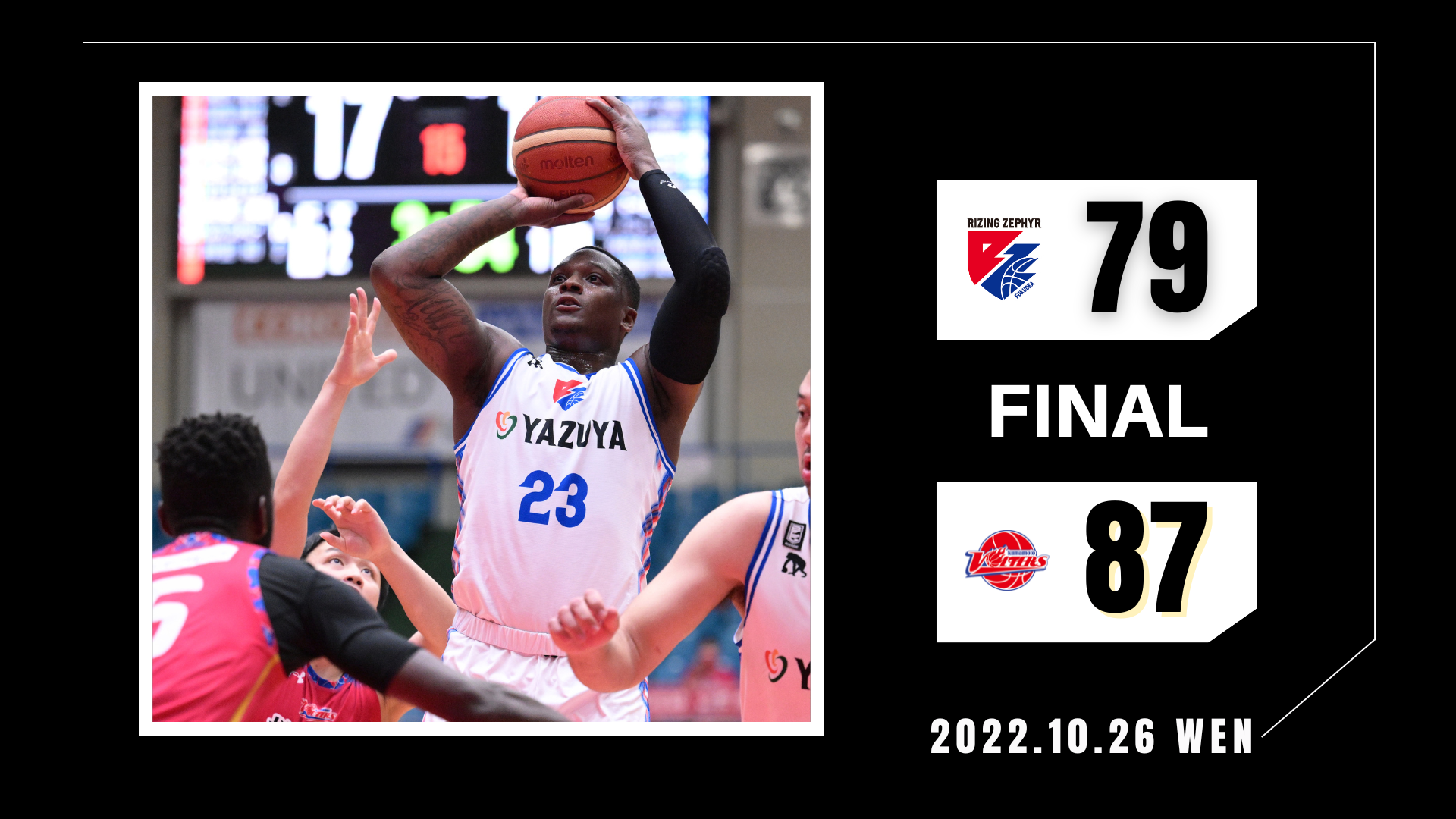 2022年10月26日(水)に開催されましたBリーグ第5節【ライジングゼファーフクオカvs.熊本ヴォルターズ】において“福岡79-87熊本”の結果となりましたことお知らせいたします。