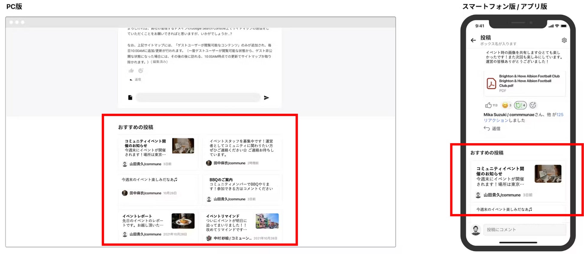 本機能により、ユーザーは自分の興味関心に近い投稿をより手軽に見つけて遷移することができるようになるとともに、その投稿に何らかのリアクション・コメントを行うことも期待されるため、「投稿を見つける人」だけでなく「投稿した人」のコミュニティへのエンゲージメントを高めていくことも期待されます。