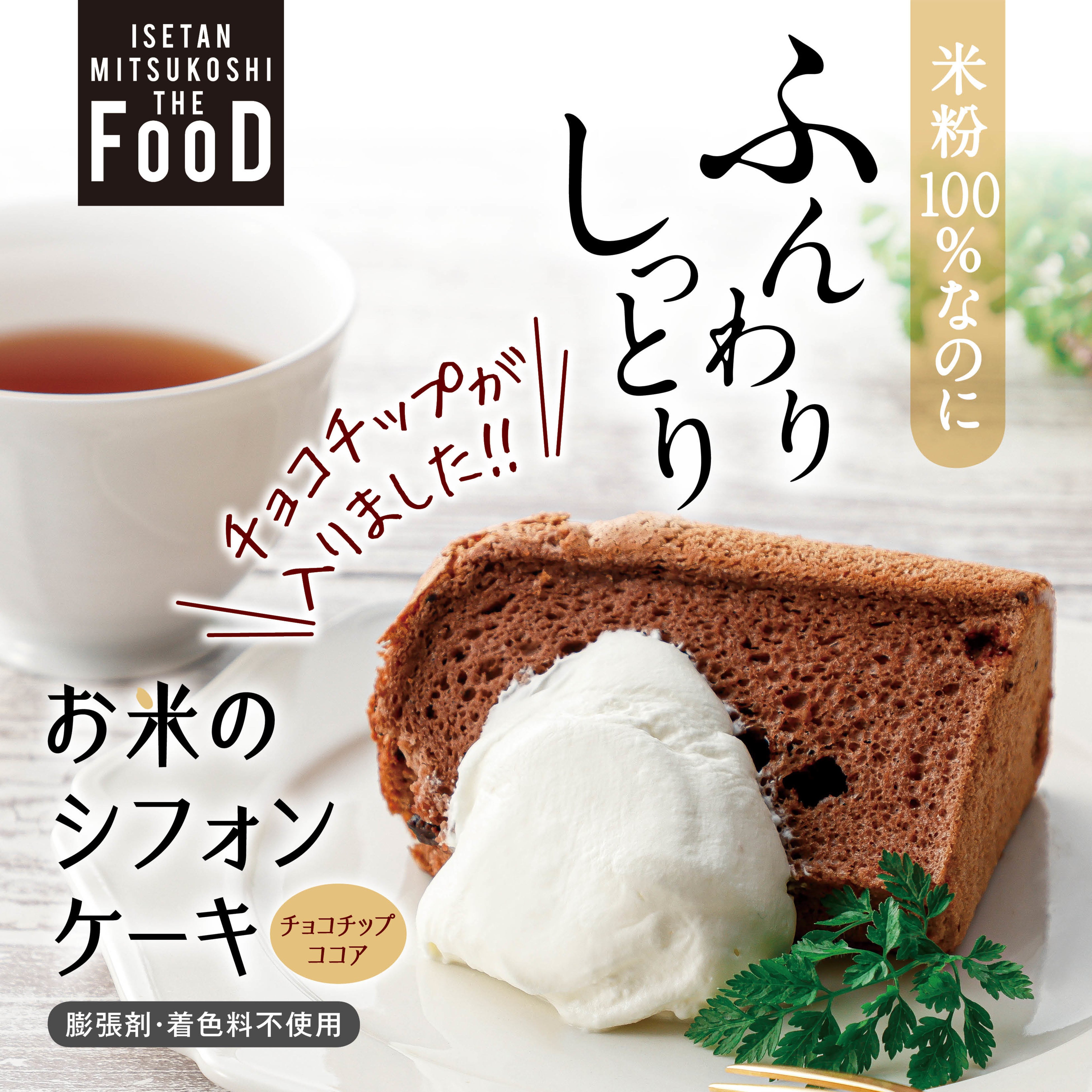 株式会社三越伊勢丹ホールディングスのグループ会社であり、首都圏を中心に18店舗のスーパーマーケット(クイーンズ伊勢丹)を運営する、株式会社エムアイフードスタイル(本社:東京都新宿区、代表取締役社長:雨宮 隆一)は、「ISETAN MITSUKOSHI THE FOOD(ミツコシイセタン ザ・フード)」から「お米のシフォンケーキ チョコチップココア」を1月15日(土)から新発売いたします。