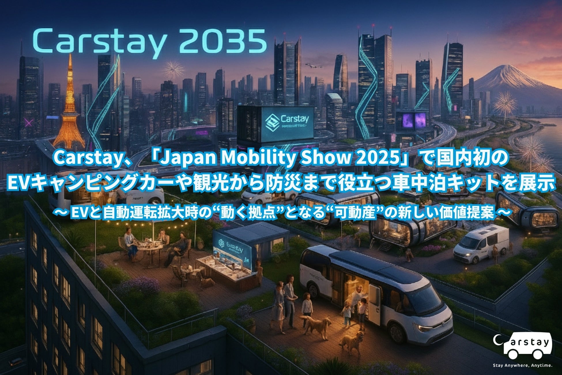 キャンピングカーと車中泊スポットのシェアリング・サービス、車両製造、改装支援など国内最大級のバンライフ※のプラットフォーム事業を展開するCarstay(カーステイ)株式会社(本社: 神奈川県横浜市、代表取締役: 宮下晃樹(みやした こうき))は2025年10月29日(水)から11月9日(日)まで東京ビッグサイト(東京都江東区)で開催される「Japan Mobility Show(ジャパン・モビリティ・ショー) 2025」に出展します。