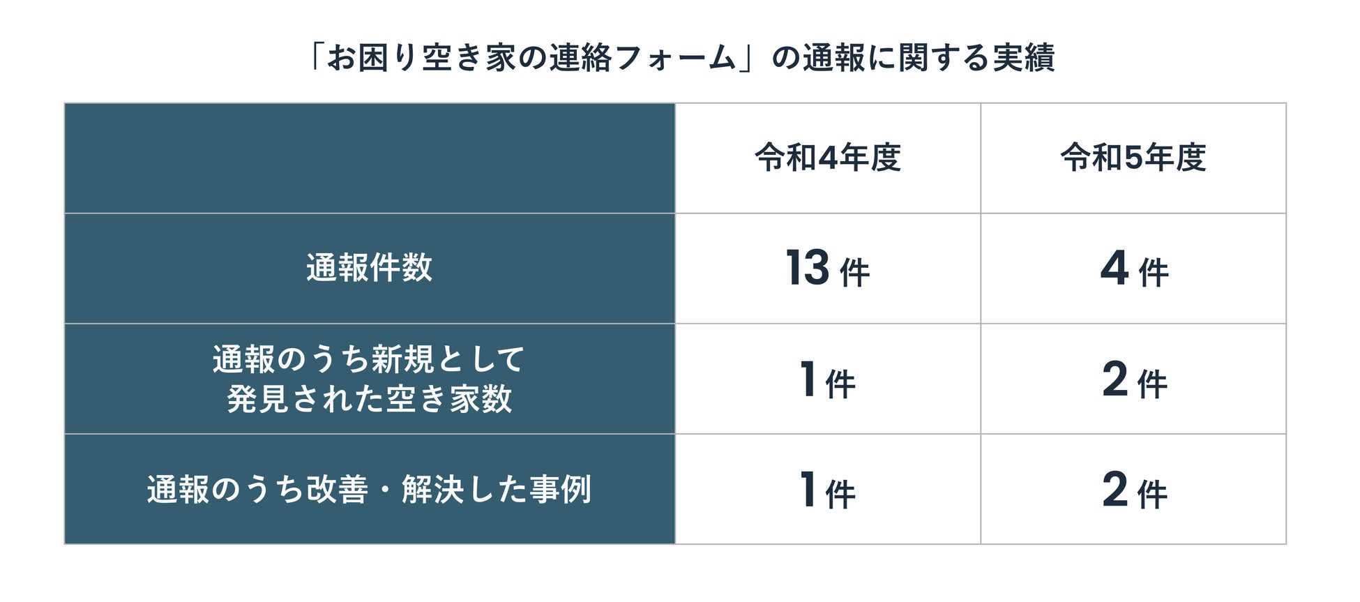 近隣住民から周囲に悪影響のある空き家を市へ通報することができる「お困り空き家の連絡フォーム」の導入で、これまで検知できていなかった空き家の認知に。