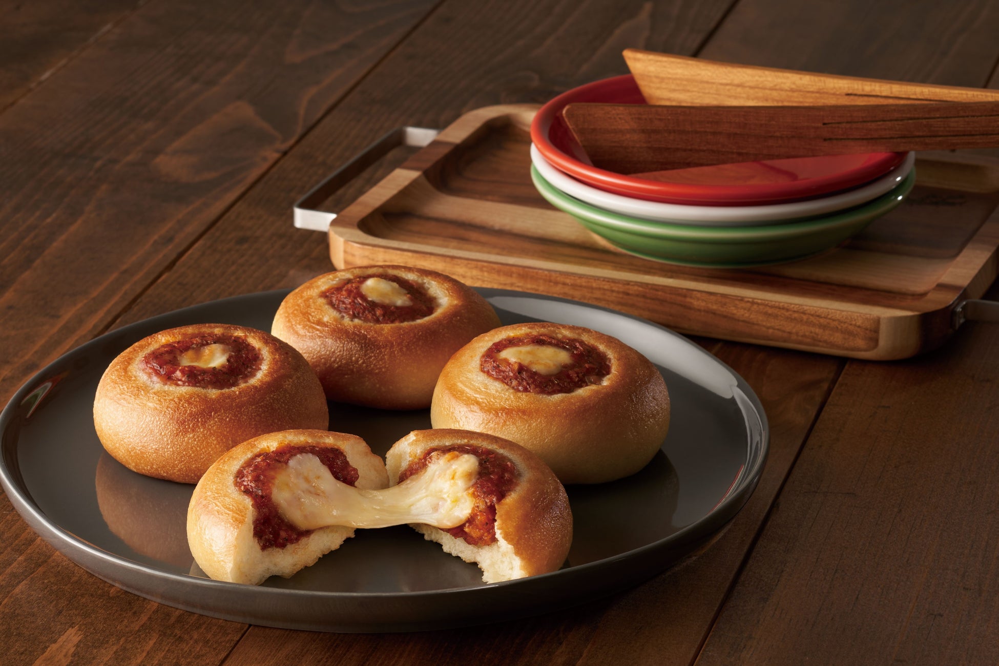 このたび、とろける 3 種のチーズと完熟トマトソースを二段発酵製法によるもっちりとした生地で包んだ冷凍パン『井村屋謹製 Pizza ぱん』を新発売します。肉まん・あんまんで培った包餡技術を活用し 、焼きたての生地の香ばしい香りのほか、チーズのおいしさや伸び、とろけ感など、焼きたてのおいしさをご家庭でお楽しみいただけます。