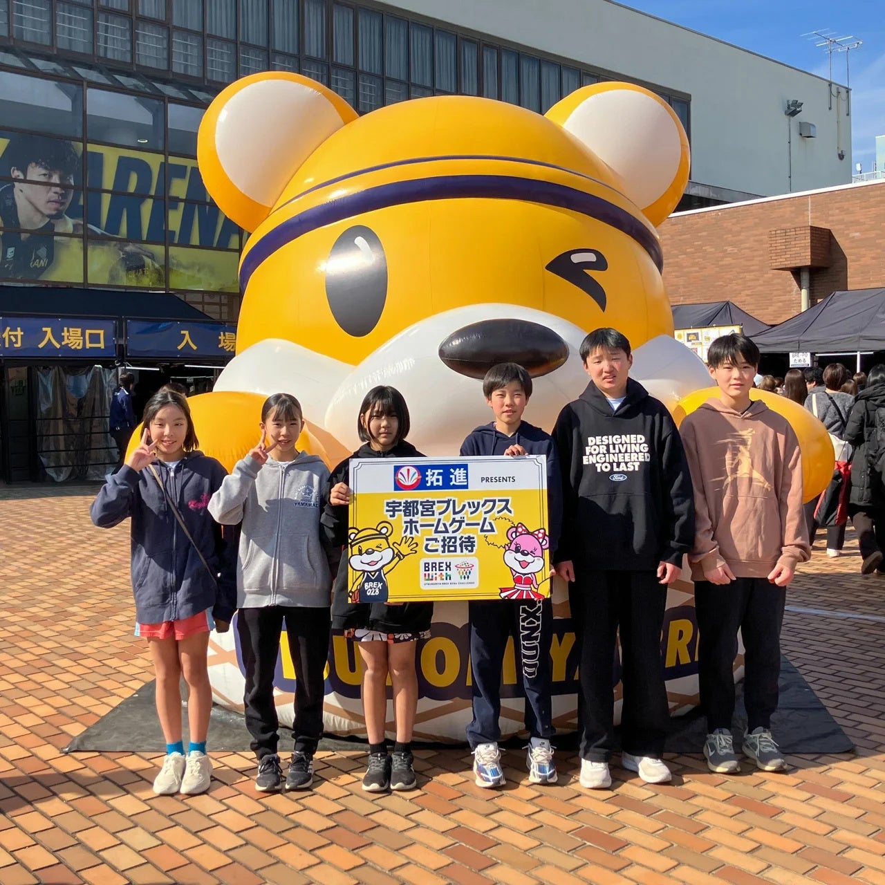 本活動では、ブレックスのオフィシャルスポンサーである拓進株式会社がBREX withの活動に協賛し、2月14日(土)の川崎ブレイブサンダース戦に栃木県内の子どもたちを招待しました。