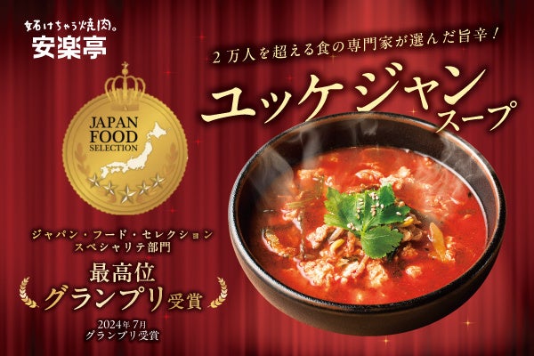 焼肉レストラン安楽亭(本社:埼玉県さいたま市、代表取締役:柳 先)はジャパン・フード・セレクション スペシャリテ部門において「ユッケジャンスープ」が焼肉店初となる最高位グランプリを受賞しました。