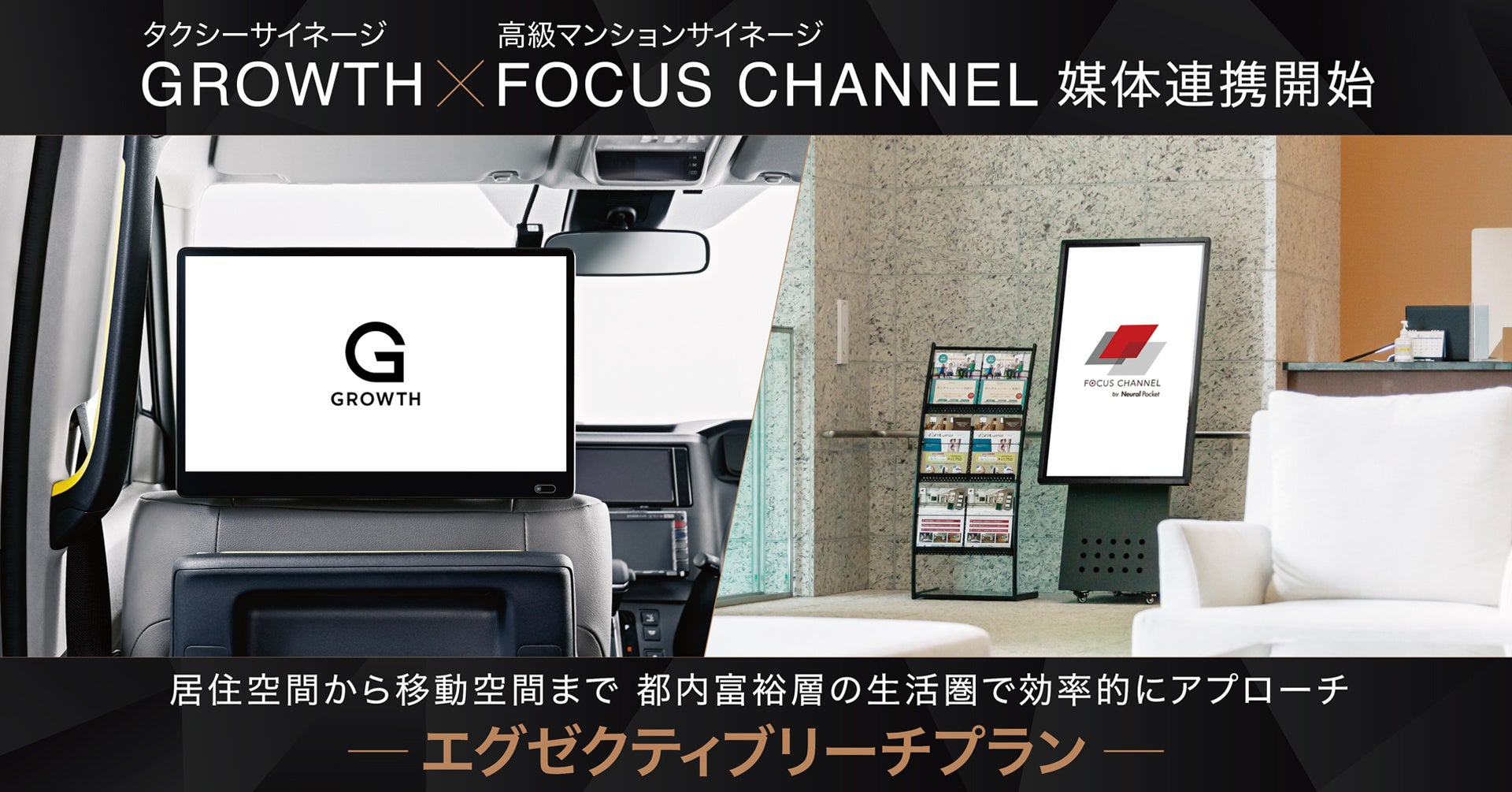 タクシーサイネージメディア「GROWTH」、マンションサイネージメディア「FOCUS CHANNEL」と提携が決定