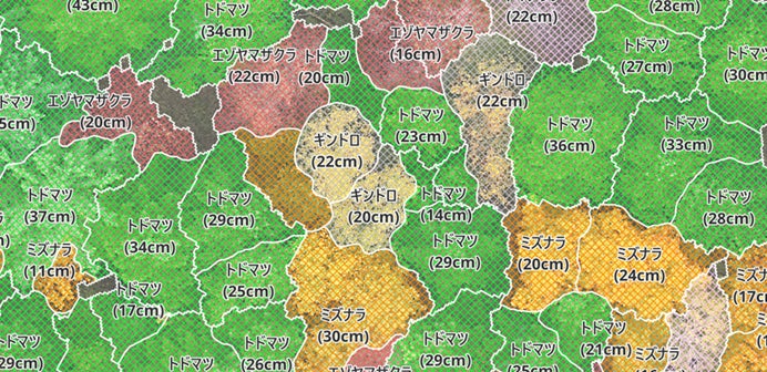 単木単位で樹種やサイズ(樹高、胸高直径、立木幹材積)、CO2固定量を推定できます。現地情報を一部入力することで主要な人工林ではない樹種にも対応可能なほか、林地の材積生産力を示す「地位」の特定作業にも活用できます。