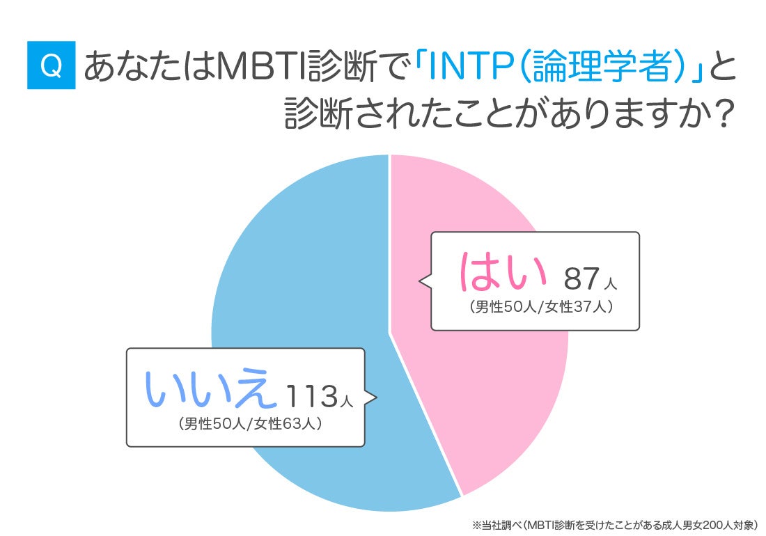 今回、「MBTI診断をしたことがある男女200名」に「あなたはMBTI診断でINTP(論理学者)と診断されたことがありますか?」というアンケートを実施しました。