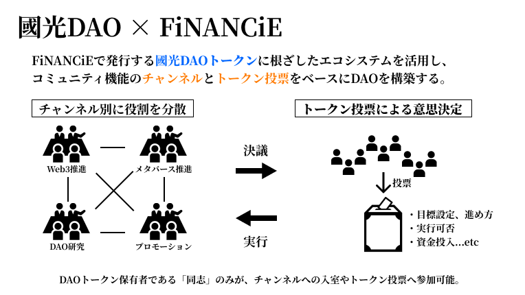 ただ、現状はFiNANCiEで発行したDAOトークンは、サービス外に持ち出すことはできないため、海外でやっているような本格的なトークンエコノミーは難しいですが、将来的に海外で國光DAOの仮想通貨としてトークンを発行・連動させていくなど、検討していきたいと思います。