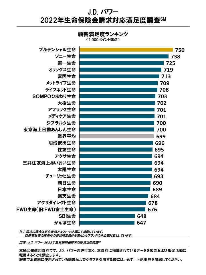 (本社:東京都港区、代表取締役社長:山本浩二、略称:J.D. パワー)は、J.D. パワー 2022年生命保険金請求対応満足度調査℠の結果を発表した。