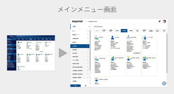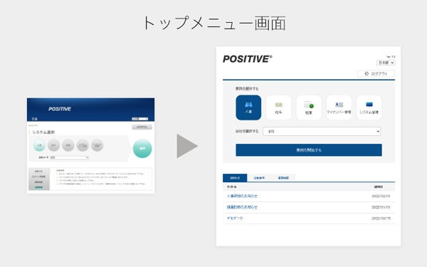 今回提供する最新版では、人的資本経営への関心が高まる中、人事領域でのさらなるデータ活用が求められることを見据え、従業員がデータ入力や情報参照をよりしやすくなるように、ユーザビリティ向上を目的としたUI刷新を図りました。また、昨今要求が高まっているグループ経営における人事DXを実現すべく、開発・導入・保守の生産性向上ツール「POSITIVE OPTIMUS」シリーズのラインアップ拡充・機能強化により、グループ展開にかかわる導入作業の大幅な効率化と、個社別の要件への柔軟な対応を可能としました。