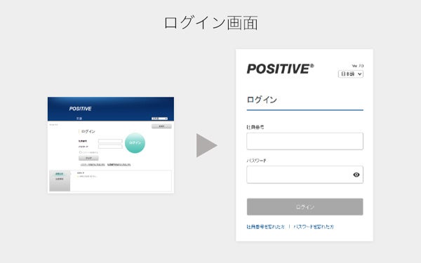 利用頻度の高いログイン画面やトップメニュー、及びPOSITIVEの全画面で共通利用するフレームを新たなデザインに刷新しました。アイコンにはフラットデザインを採用することで、より高い視認性を実現しています。