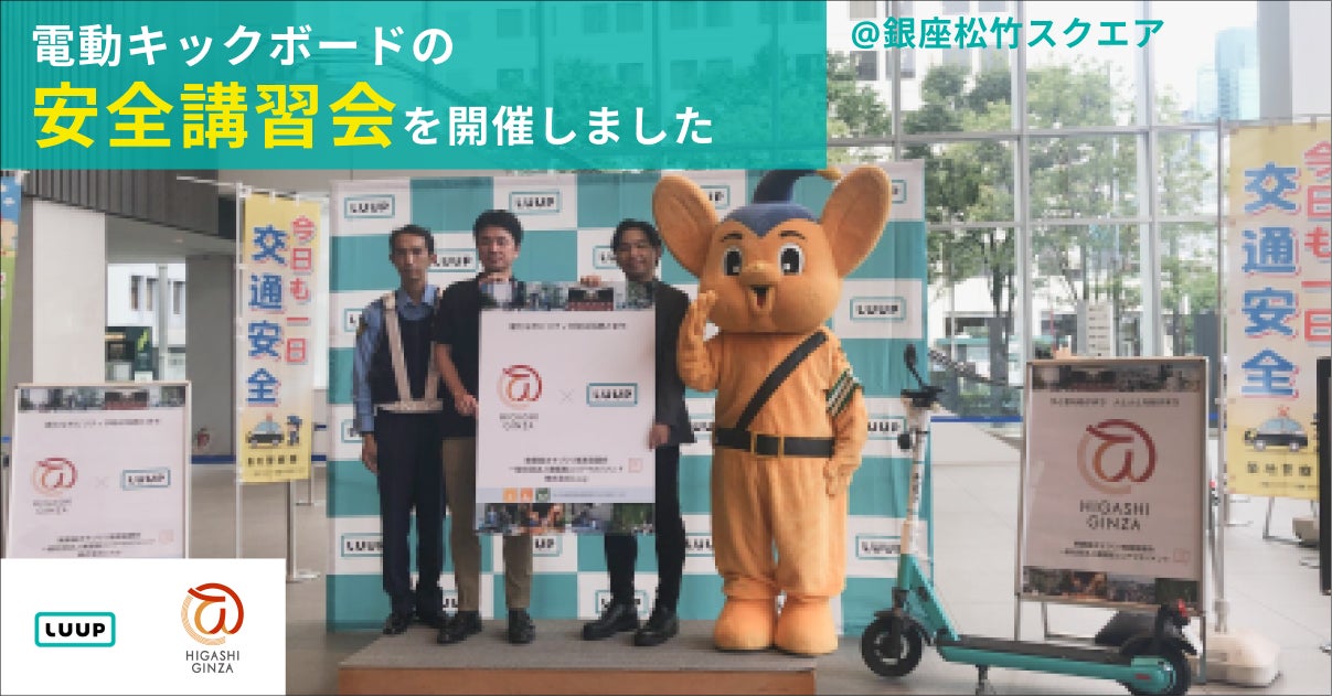 株式会社Luup(本社:東京都渋谷区、代表取締役社長兼CEO:岡井大輝、以下「Luup」)は、電動キックボードの安全講習会を2022年9月7日(水)に銀座松竹スクエア(東京都中央区築地1丁目13−1)にて開催しました。当日は東銀座まちづくり推進協議会(事務局:一般社団法人東銀座エリアマネジメント)と連携し、築地警察署の協力を得て、電動キックボードの正しい交通ルールのレクチャーや安全な走行方法をお伝えし、実際に試乗いただく講習会を行いました。