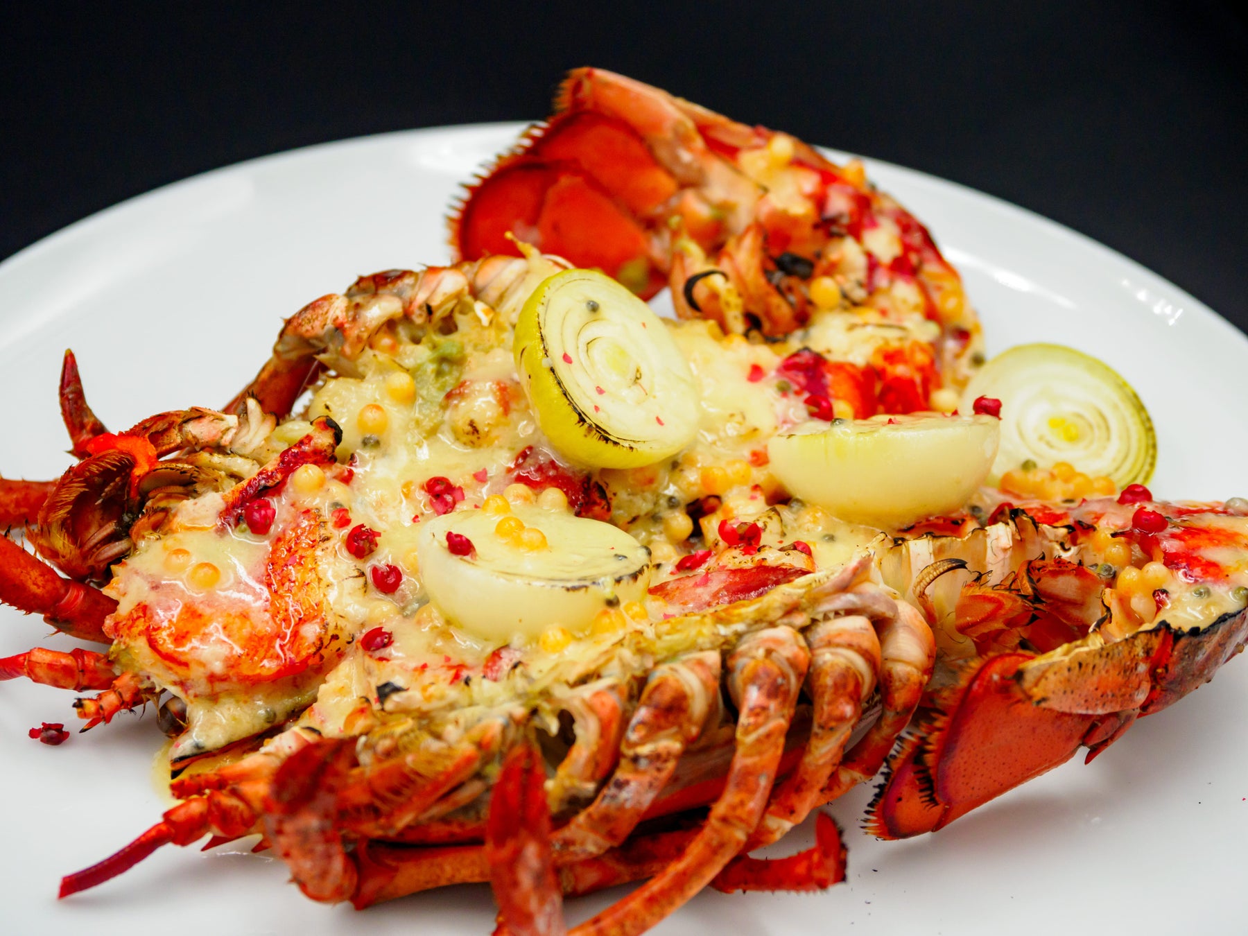 ロブスターをまるまる一尾使用し、旨みをギュッと閉じ込めるように殻付きでロースト。