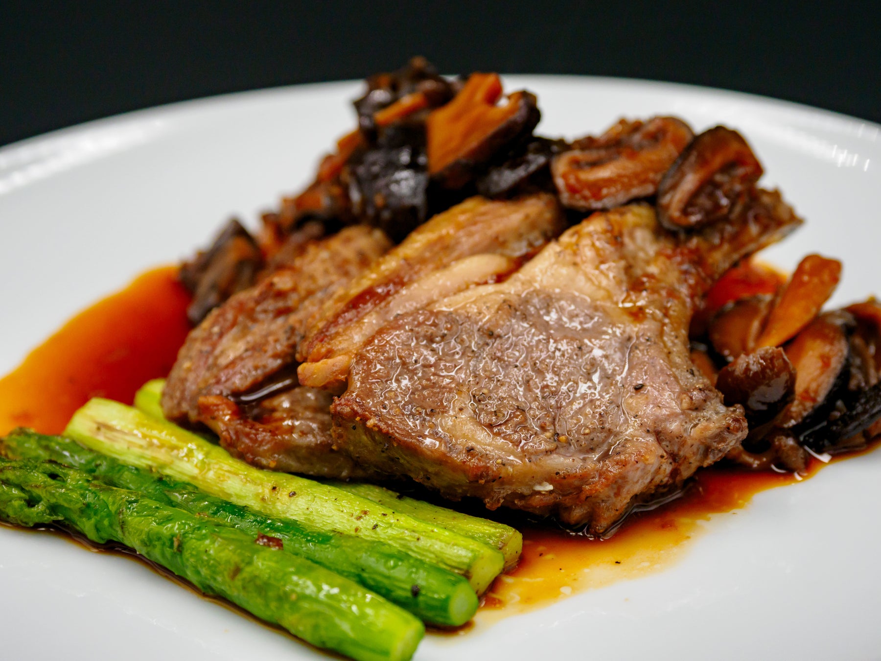 豪州産骨付きラムチョップのロースト 3種きのこのマディラソース