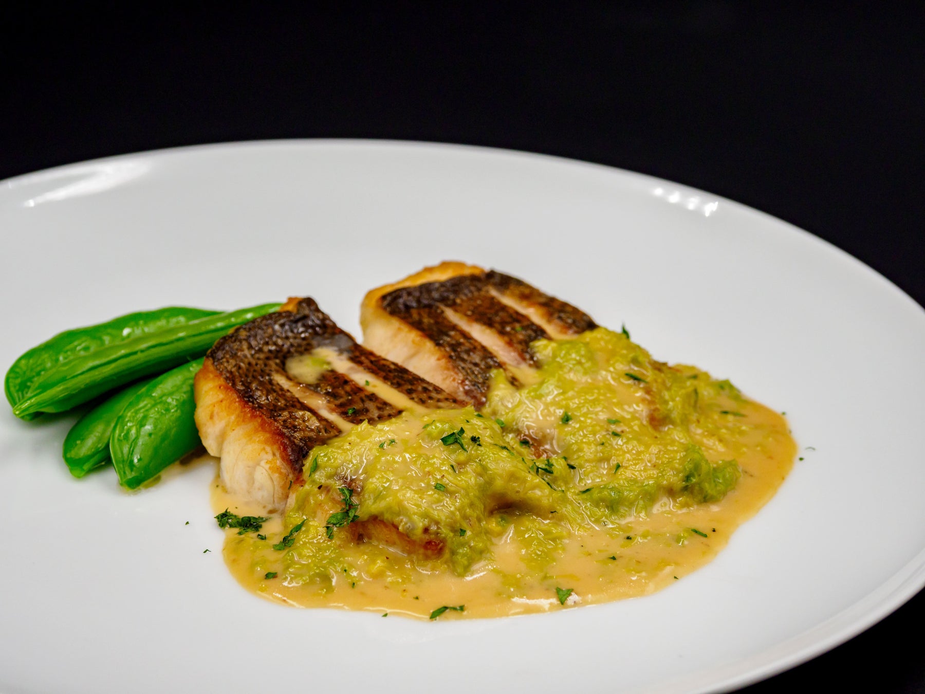 肉厚なイサキを皮目はパリパリに、身はしっとりと柔らかく焼き上げ、