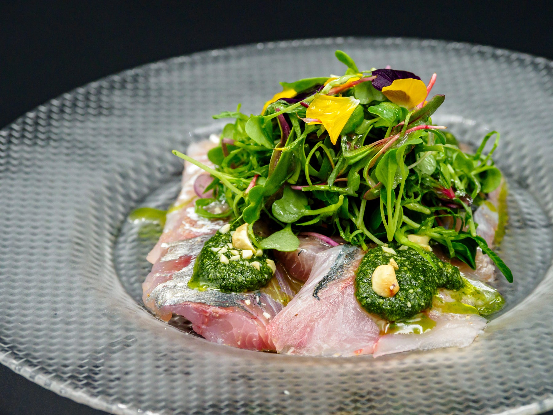 旬を迎える真鯵を大葉の香りを存分に生かした特製ソースでマリネにいたしました。