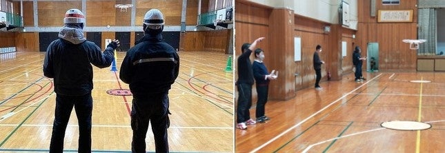 勉強会では無人航空機国家ライセンス制度の概要を紹介。実技ではインストラクターが実際の修了審査のデモンストレーションを行います。また希望される方は、試験コースの「スクエア飛行」や「8の字飛行」の操縦体験ができます。