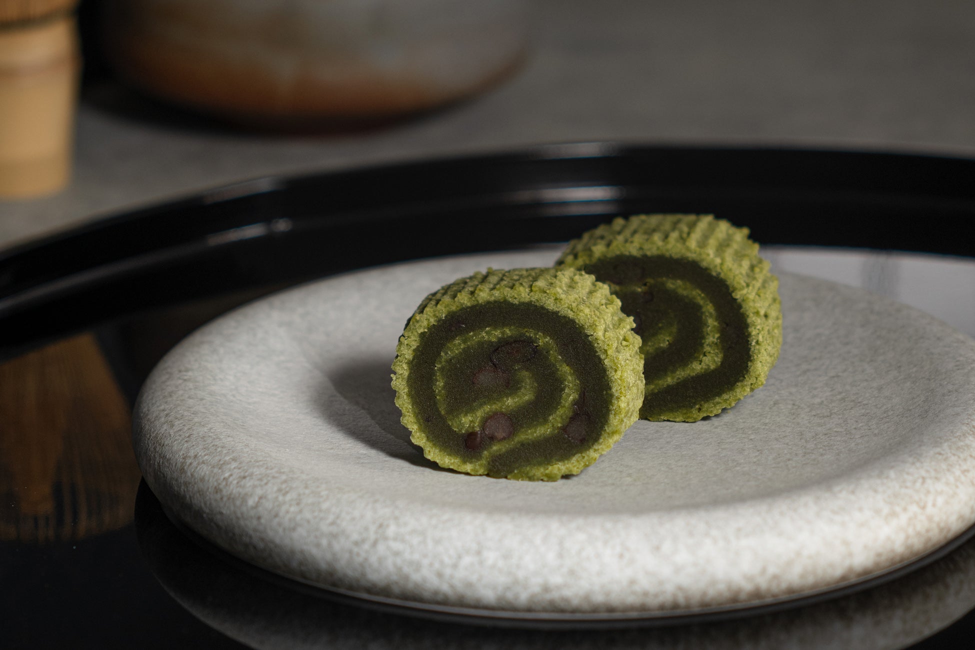 1920年(大正9年)創案から100年以上、職人の手で巻き上げて作られる代表銘菓「京観世」抹茶風味の新商品です。『石臼挽き宇治抹茶』をこめたしっとり味わい深い羊羹に小倉を散らし、抹茶風味のそぼろあんで渦状に仕上げた抹茶づくしの美味しさです。