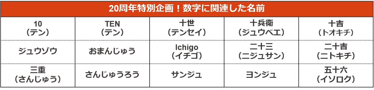 【番外編③】20周年特別企画!数字に関連した名前
