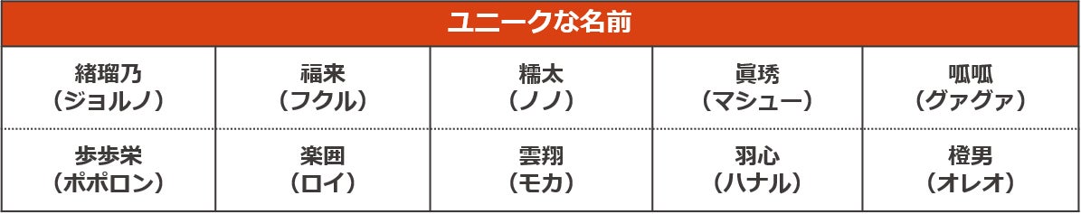 ● 毎年恒例ユニークな名前には、「歩歩栄(ポポロン)」や「福来(フクル)」など