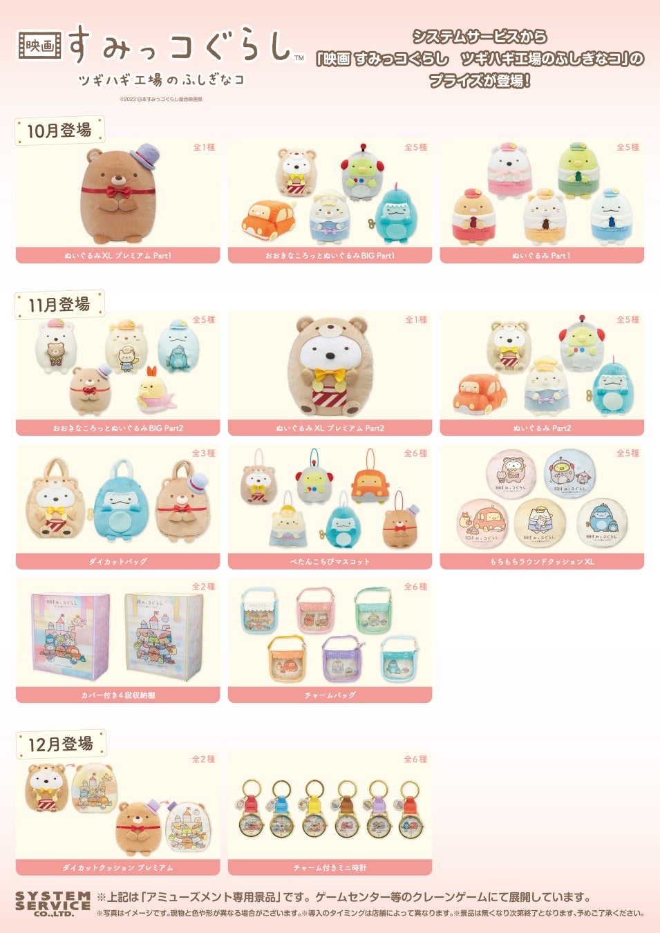 11月3日公開『映画 すみっコぐらし ツギハギ工場のふしぎなコ』のアミューズメントプライズ商品がシステムサービスより登場!