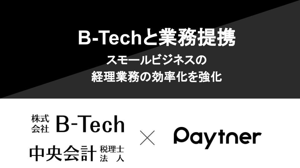 ペイトナー、中央会計税理士法人の関連企業である、株式会社B-Techと業務提携〜「ペイトナー 請求書」を通してスモールビジネスの業務効率化を促進〜