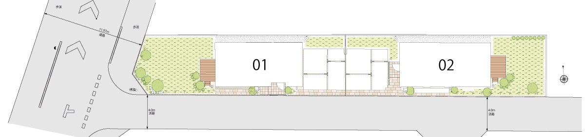 当分譲地は、土地区画整理事業により、低層住宅を主体とした良好な住宅街区としての土地利用が図られている地区内で、建物の高さや用途が制限され、将来的にも良好な環境が保たれる「第一種低層住居専用地域」に該当。敷地面積170m2超のゆとりを活かした住まいが誕生します。