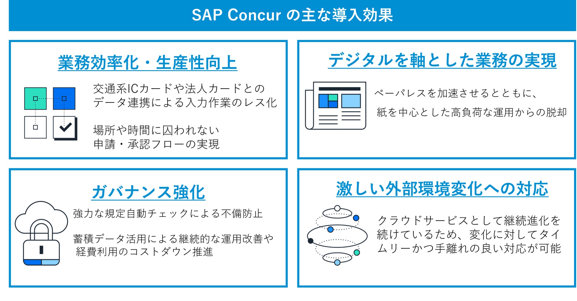 SAP Concurは、出張、経費、請求書管理を統合したソリューションを提供する世界有数のブランドであり、これらのプロセスの簡素化と自動化を追求しています。高い評価を得ているSAP Concurのモバイルアプリは、社員の出張をサポートし、経費を自動で入力し、請求書の承認を自動化します。AIを使いリアルタイムのデータを統合、分析することで、効率的な支出管理を行うことが可能です。SAP Concurのソリューションは、手間の掛かる作業をなくし、お客様の業務効率化に貢献、最高の状態でビジネスを進めることができるようサポートします。詳細はconcur.comまたはSAP Concur ブログをご覧ください。