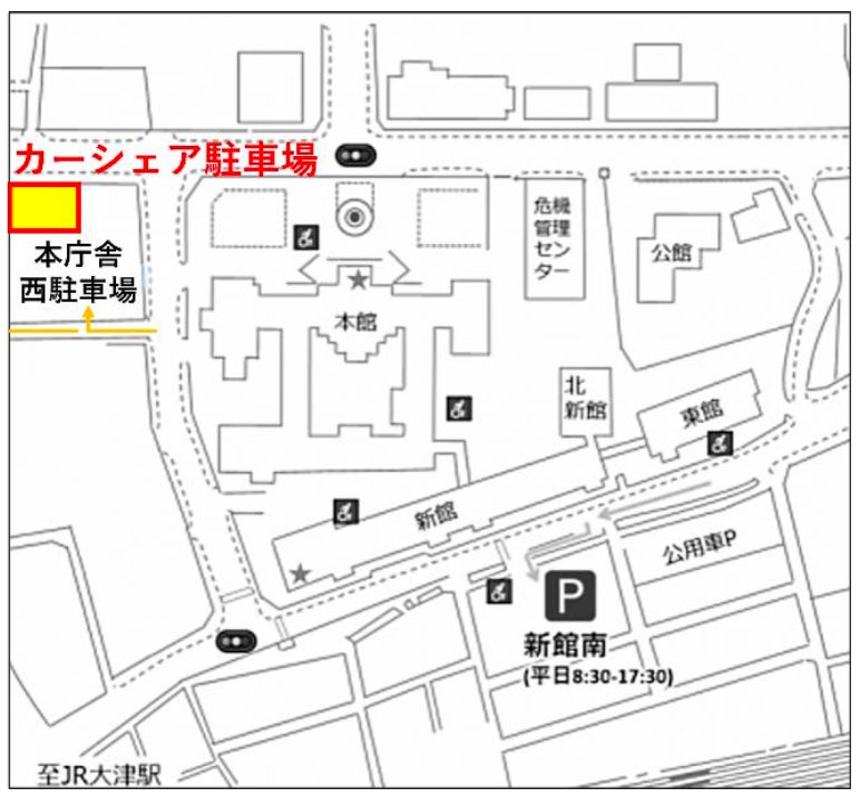 〒520-8577 滋賀県大津市京町4丁目1−1県本庁舎西駐車場(奥の来庁者用区画)