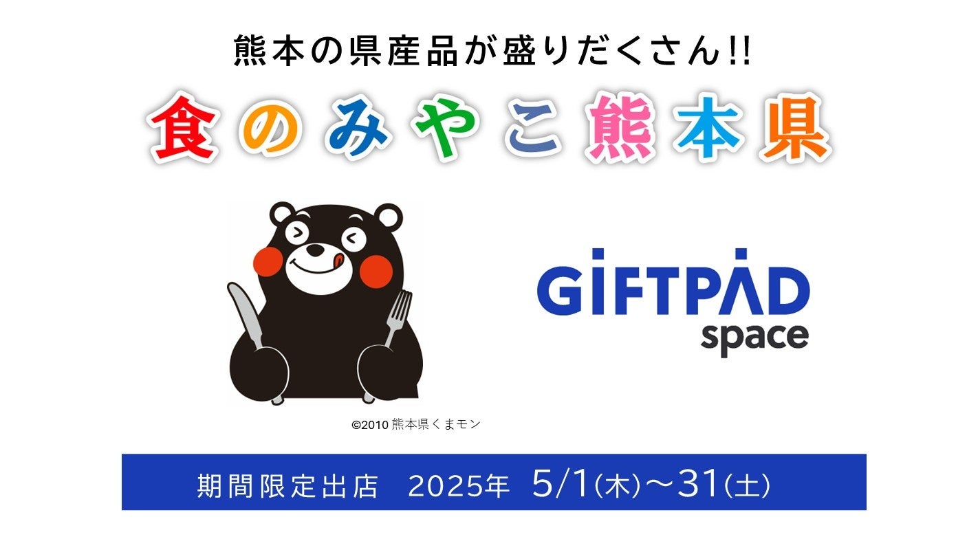 株式会社ギフトパッド(本社:大阪市、代表取締役:園田 幸央、以下、ギフトパッド)は、運営する次世代アンテナショップ『Giftpad space~日本の魅力をつむぐ~』(KITTE大阪2F)にて、2025年5月1日(木)から31日(土)までの1ヶ月間、熊本県の魅力を広く紹介する「くまもと物産フェア」を開催します。
