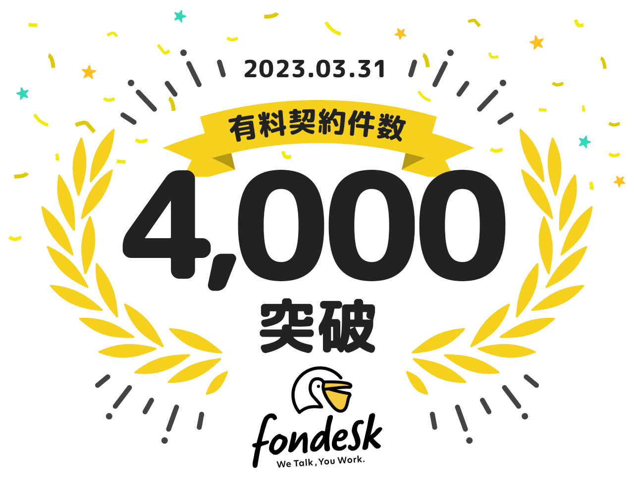 労働力不足問題解決のリーディングカンパニーとして、複数のSaaSを展開する株式会社うるる(東京都中央区 代表取締役社長:星 知也)が運営する、電話取次サービス「fondesk」は、2023年3月末時点で、有料契約件数が4,000件を突破したことをお知らせいたします。